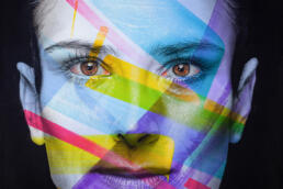 The human face corresponds to a unique canvas on which the traces of our life are drawn. These characteristics make it distinctive and reflect in a certain way which lifestyle a person has led. I add the level of passion to the natural facial texture, which has an important place in the artist’s existence. The projection of the artwork creates a mask-like, archaic expression. The closed eyes symbolize a turning towards the inner life of the artist.